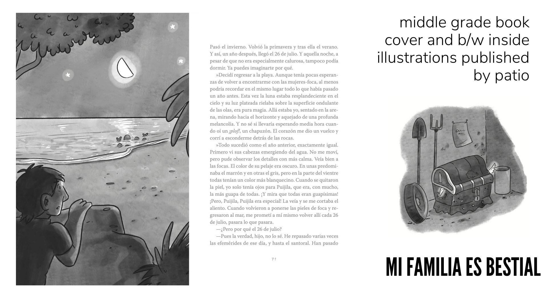 Ilustración de las portadas y ilustraciones interiores en blanco y negro, publicado por editorial Patio.